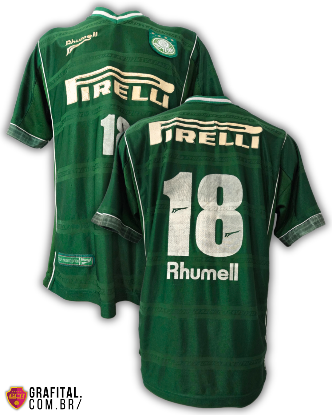OBS: Lindíssima camisa de jogo Rhumell do Palmeiras, em bom estado de conservação, poucos fios, desgaste nas partes pintadas, etiqueta na gola cortada e avarias no patrocínio conforme fotos. Caso queira ver mais fotos favor acesse nosso instagram ou whatsapp.