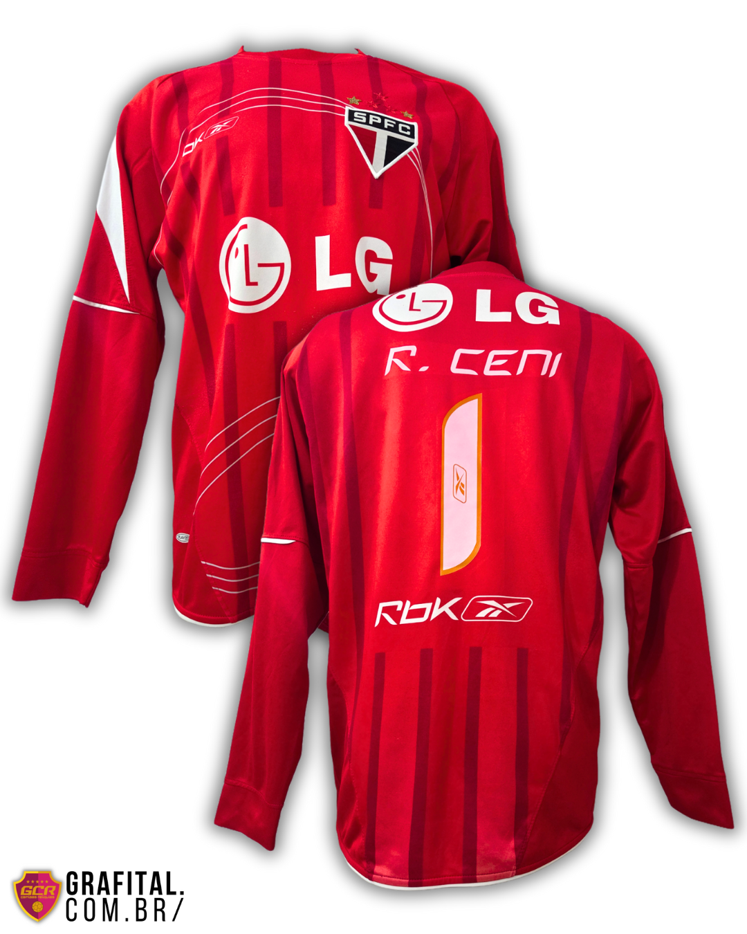 OBS: Raridade do goleiro R. Ceni campeão Brasileiro 2006, relíquia com patch histórico de Tricampeão da Copa Libertadores 2005. Está muito boa, contém poucas bolinhas e a tag da frente (próxima da barra, veja última foto) caiu. O número e nome estão com desgaste bem leve conforme fotos. Caso queira ver mais fotos favor acesse nosso instagram ou whatsapp.